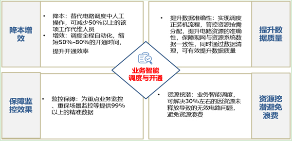 以覆蓋業(yè)務(wù)級(jí)的OODA(全閉環(huán)流程的自我決策和優(yōu)化)設(shè)計(jì)理念,通過(guò)監(jiān)控、自愈策略匹配、調(diào)整優(yōu)化、再監(jiān)控,快速自動(dòng)解決問題,確保網(wǎng)絡(luò)風(fēng)險(xiǎn)及時(shí)預(yù)測(cè)及故障事件無(wú)感知自恢復(fù)。 轉(zhuǎn)變傳統(tǒng)網(wǎng)絡(luò)運(yùn)維以人力注入為本的運(yùn)維方式,以ChatOps、AIOps技術(shù)提升網(wǎng)絡(luò)智能運(yùn)維水平,大大降低網(wǎng)絡(luò)運(yùn)維工作純?nèi)斯げ僮魍度氤杀�,提升運(yùn)維效率和網(wǎng)絡(luò)感知能力,提高通信網(wǎng)絡(luò)健康度,保障通信網(wǎng)絡(luò)穩(wěn)定運(yùn)行。