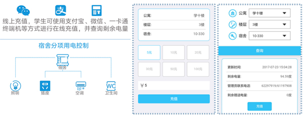 當(dāng)下智慧校園、平安校園的建設(shè)越來(lái)越普及,校園宿舍作為其中的重要一環(huán),宿舍用電安全和節(jié)能降耗必不可少。特別是宿舍面臨的用電安全隱患,學(xué)生偷用大功率電器而引起的火災(zāi)問題。日常宿舍管理需要實(shí)現(xiàn)的自動(dòng)查詢違規(guī)用電、自動(dòng)斷電供電、按需要分時(shí)分區(qū)供電、統(tǒng)計(jì)宿舍日常用電、學(xué)生充值繳費(fèi)等需求,亟需解決。